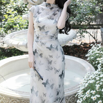 其次是印花设计 使用了传统的中国元素,如牡丹、龙凤等经典图案,每一处印花都经过精心设计,色彩丰富却不失和谐,既有东方的典雅,也有西方的流行色彩。这样的设计不仅体现了旗袍的传统美,更加入了时尚的元素,使其在国际舞台上也能展现独特的魅力。